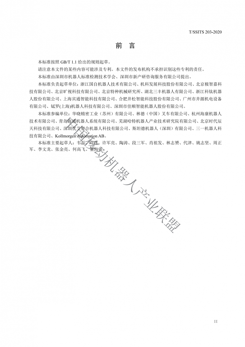 本標準參編單位∶華曉精密工業(蘇州)有限公司、林德中國)叉車有限公司、杭州海康機器人技術有限公司、青島梅通機器人系統有限公司、蕪湖哈特機器人產業技術研究院有限公司、北京時代辰天科技有限公司、深圳優芝智合機器人科技有限公司、斯坦德機器人(深圳)有限公司、三一機器人科技有限公司、KollmorgenAutomation AB。
