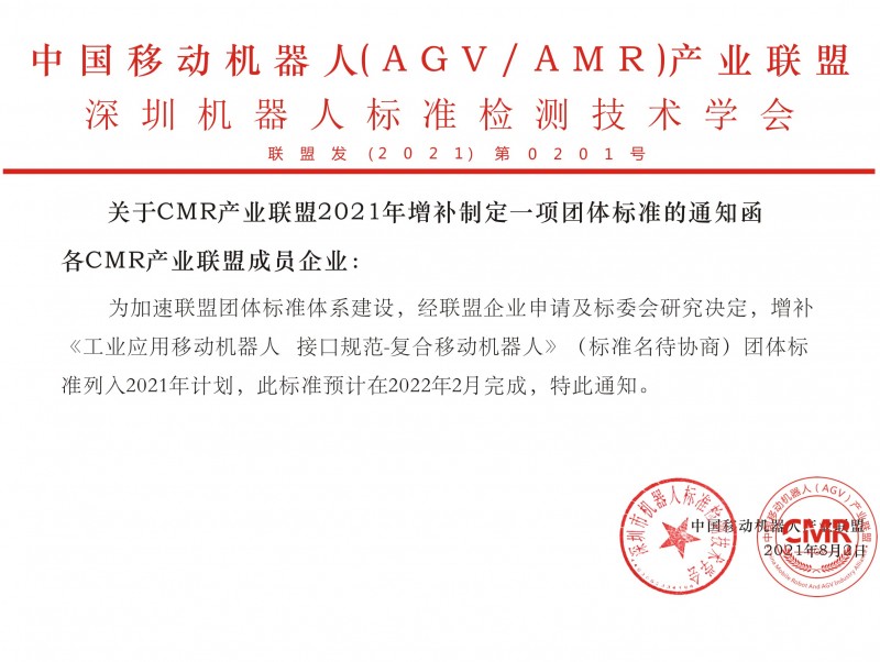 深圳市機器人標準檢測技術學會關于新增復合移協機器人相關團體標準的通知函