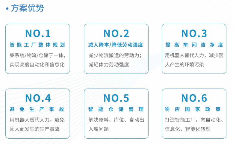 建設(shè)成效:為客戶打造智能工廠/數(shù)字工廠樣板,推動傳統(tǒng)制造業(yè)轉(zhuǎn)型升級;智能物流有效減少生產(chǎn)崗位搬運(yùn)人員配置,拉動生產(chǎn)節(jié)拍效率,為企業(yè)減員降本、提效增產(chǎn)。