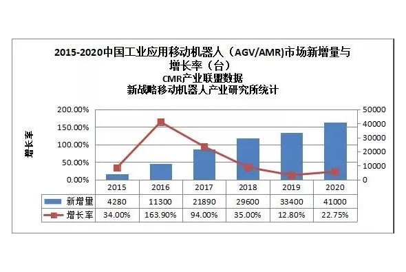 2020年中國工業應用移動機器人新增量達41000臺,市場規模達76.8億元
