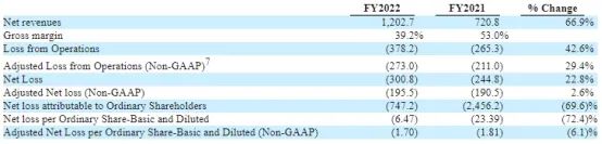 原始財報數據顯示,Luminar在2022年實現營收0.41億美元,對比2021年有所增長,但增幅不大。全年凈虧損達4.42億美元,較2021年同期翻倍。