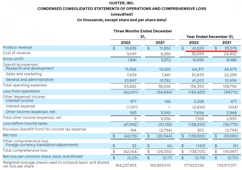 從原始財務報表全年數據看,Cepton在2022年全年實現營收743萬美元。全年凈虧損為0.61億美元。