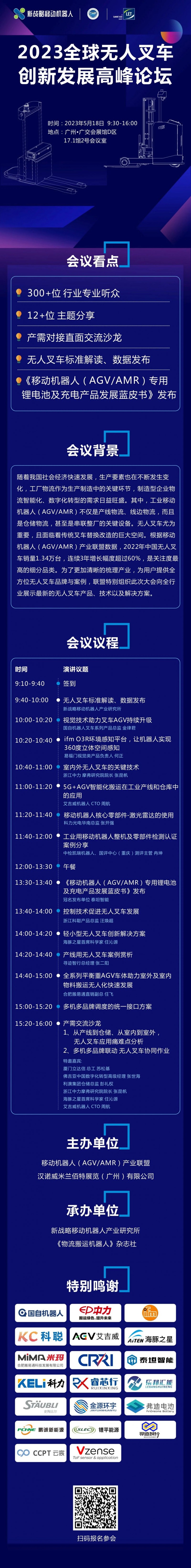 5月18日,為了更好地解讀無(wú)人叉車技術(shù)及市場(chǎng)應(yīng)用現(xiàn)狀,由CMR產(chǎn)業(yè)聯(lián)盟主辦的“2023全球無(wú)人叉車創(chuàng)新發(fā)展高峰論壇”將在廣州重磅開啟,會(huì)議上,除14+主題演講外,還將重磅發(fā)布《移動(dòng)機(jī)器人(AGV/AMR)專用鋰電池及充電產(chǎn)品發(fā)展藍(lán)皮書(2023版)》,敬請(qǐng)期待!