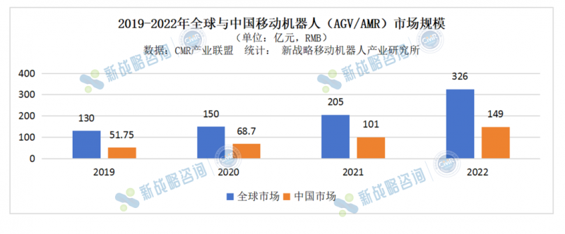 圖表:2019-2022年全球與中國移動機器人(AGV/AMR)市場規(guī)模