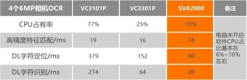 SVA2000利用硬件平臺的異構特性對軟件架構和算法效率進行了深度優化,在4相機應用場景下,它的性能可以對齊桌面級CPU和GPU,能夠滿足大部分多相機視覺應用的節拍要求。