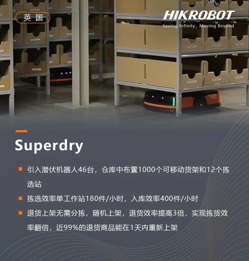 針對流通行業(yè)的業(yè)務波動量大、效率要求高、業(yè)務容錯率低、庫容要求高等核心難題,結合豐富的產(chǎn)品線和解決方案、智能算法等全場景規(guī)劃能力,海康機器人為行業(yè)伙伴打造了高坪效、高人效、高柔性的解決方案,覆蓋電商零售、鞋服、煙草酒水、商超、圖書出版、3PL、醫(yī)藥等細分行業(yè)。