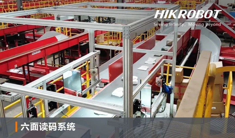 海康機器人研發(fā)的六面讀碼系統(tǒng)結合了機器視覺技術和高靈敏度重量傳感器,能夠自動捕捉傳送帶上整箱物料的全方位信息,包括六面條形碼、尺寸和重量,簡化了以往復雜的手動操作流程,確保整箱分揀的自動化與高效率。