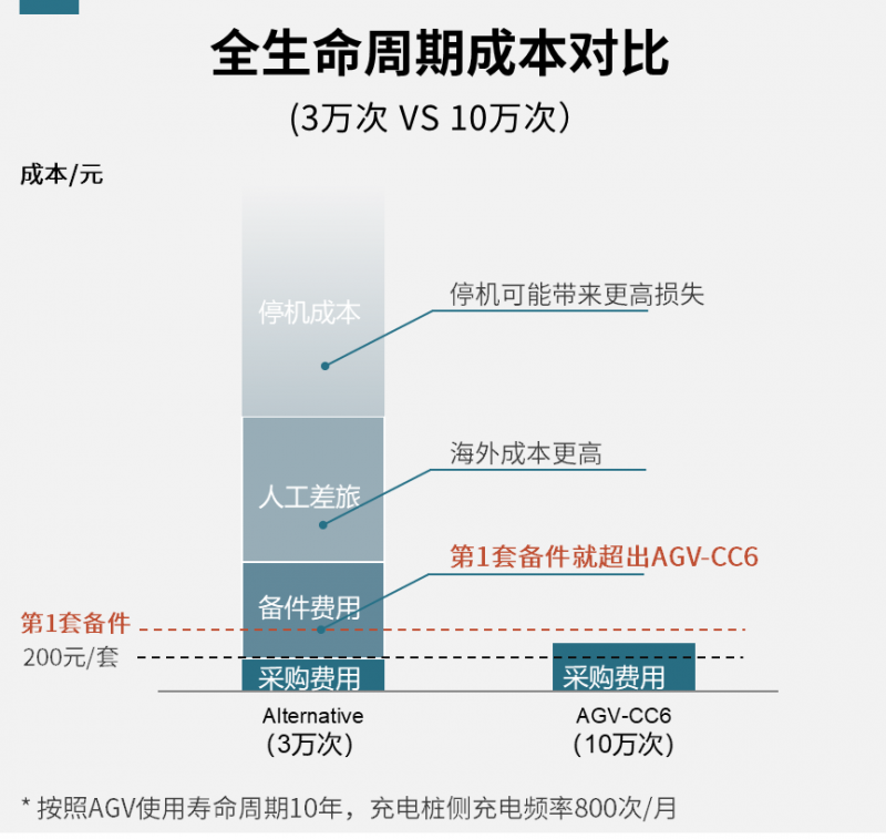 終端用戶評估移動機器人項目是否值得落地,關鍵指標是投資回報率 ROI,計算ROI需要拉長周期。同理,評估充電連接器成本也要看全生命周期,即總體擁有成本TCO。