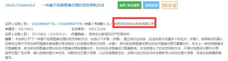新戰(zhàn)略移動機器人產業(yè)研究所通過專利檢索發(fā)現(xiàn),目前該導航方式為發(fā)明專利,主要專利人為合肥井松自動化科技有限公司與上海懶書智能科技有限公司所有,發(fā)明人均為劉詩聰。